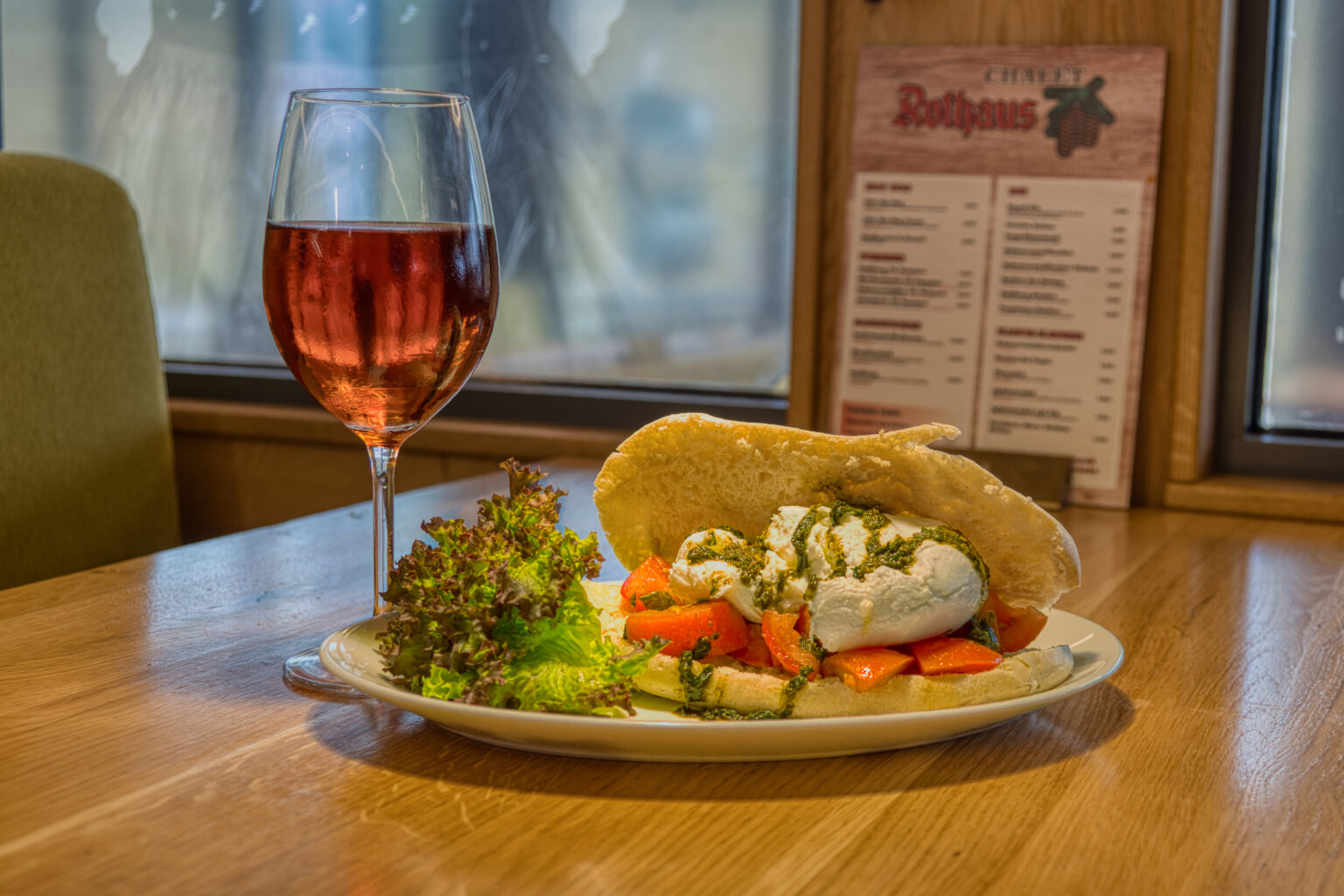 Dazu servieren wir eine große Auswahl an erfrischenden Kalt- und Heißgetränken – perfekt für eine entspannende Pause. Lassen Sie sich auf unserer sonnigen Terrasse mit Platz für 80 Gäste nieder und genießen Sie die unvergleichliche Aussicht auf das Feldbergmassiv.